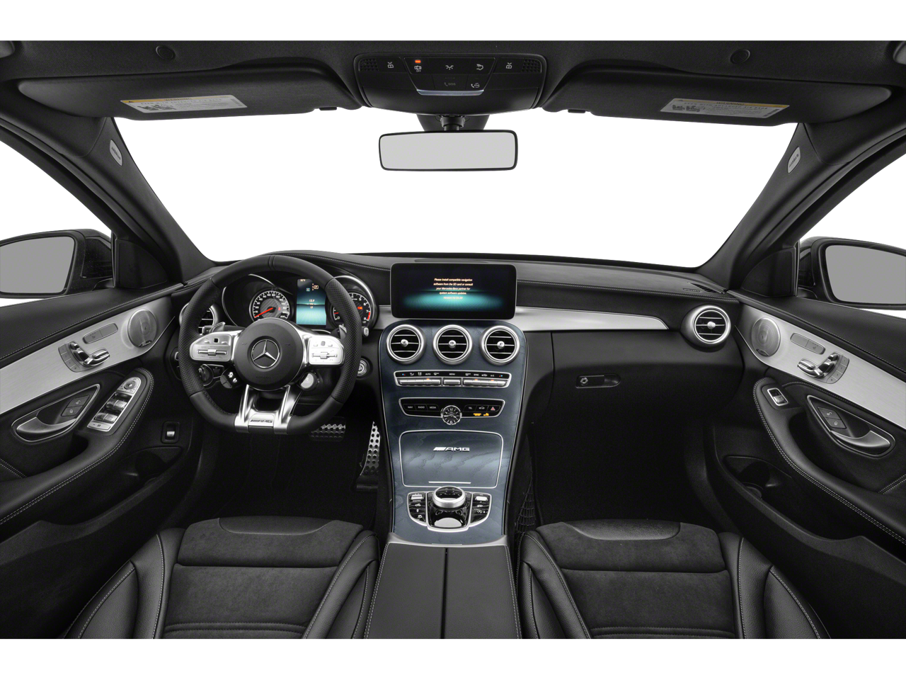 This vehicle comes equipped with : 13 Speakers, 4-Way Lumbar Support, 4-Wheel Disc Brakes, ABS brakes, Adaptive suspension, Air Conditioning, Alloy wheels, AM/FM radio: SiriusXM, Android Auto®, Apple CarPlay®, Apple CarPlay®/Android Auto®, Auto tilt-away steering wheel, Auto-dimming door mirrors, Auto-dimming Rear-View mirror, Automatic temperature control, Brake assist, Bumpers: body-color, Burmester® Surround Sound System, Compass, Delay-off headlights, Driver door bin, Driver vanity mirror, Dual front impact airbags, Dual front side impact airbags, Electronic Stability Control, Emergency communication system: Mercedes me connect, Exterior Parking Camera Rear, Four wheel independent suspension, Front anti-roll bar, Front Bucket Seats, Front Center Armrest, Front dual zone A/C, Front reading lights, Fully automatic headlights, Garage door transmitter: Homelink, Genuine wood console insert, Genuine wood dashboard insert, Genuine wood door panel insert, HD Radio, Head restraints memory, Heated door mirrors, Heated front seats, Illuminated entry, Knee airbag, Low tire pressure warning, MB-TEX/DINAMICA Upholstery, Memory seat, Occupant sensing airbag, Outside temperature display, Overhead airbag, Overhead console, Panic alarm, Passenger door bin, Passenger vanity mirror, Performance Tires, Power adjustable front head restraints, Power door mirrors, Power driver seat, Power Driver Seat & Steering Column w/Memory, Power Heated Front Seats w/Memory, Power moonroof, Power passenger seat, Power Passenger Seat w/Memory, Power steering, Power windows, Radio data system, Radio: Audio 20, Rain sensing wipers, Rear anti-roll bar, Rear fog lights, Rear reading lights, Rear seat center armrest, Rear side impact airbag, Rear window defroster, Remote keyless entry, Security system, SiriusXM Satellite Radio, Smartphone Integration, Speed control, Speed-sensing steering, Split folding rear seat, Spoiler, Sport steering wheel, Steering wheel memory, Steering wheel mounted audio controls, Tachometer, Telescoping steering wheel, Tilt steering wheel, Traction control, Trip computer, Turn signal indicator mirrors, Variably intermittent wipers, Weather band radio, and Wheels: 18" AMG® 10-Spoke.