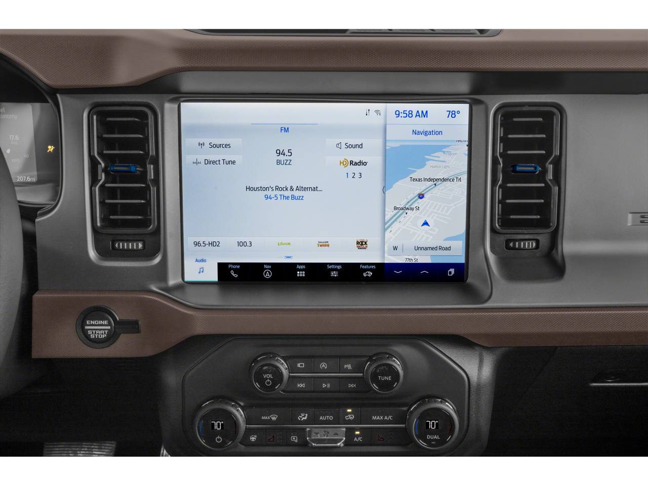- Connected Navigation -inc: pinch-to-zoom capability, live traffic, predictive destinations and route guidance and 1 box search, Navigation services require SYNC4 and FordPass Connect, complimentary connect service and the FordPass app (see FordPass terms for details), Customer when an eligible vehicle is added to a member's FordPass account, Trial period begins on the new vehicle warranty start date, At the end of the complimentary period, navigation service will terminate, Connected service and features depend on compatible AT&T network availability, Evolving technology/cellular networks/vehicle capability may limit functionality and prevent operation of connected features, FordPass App, compatible w/select smartphone platforms, is available via a download, Message and data rates may apply