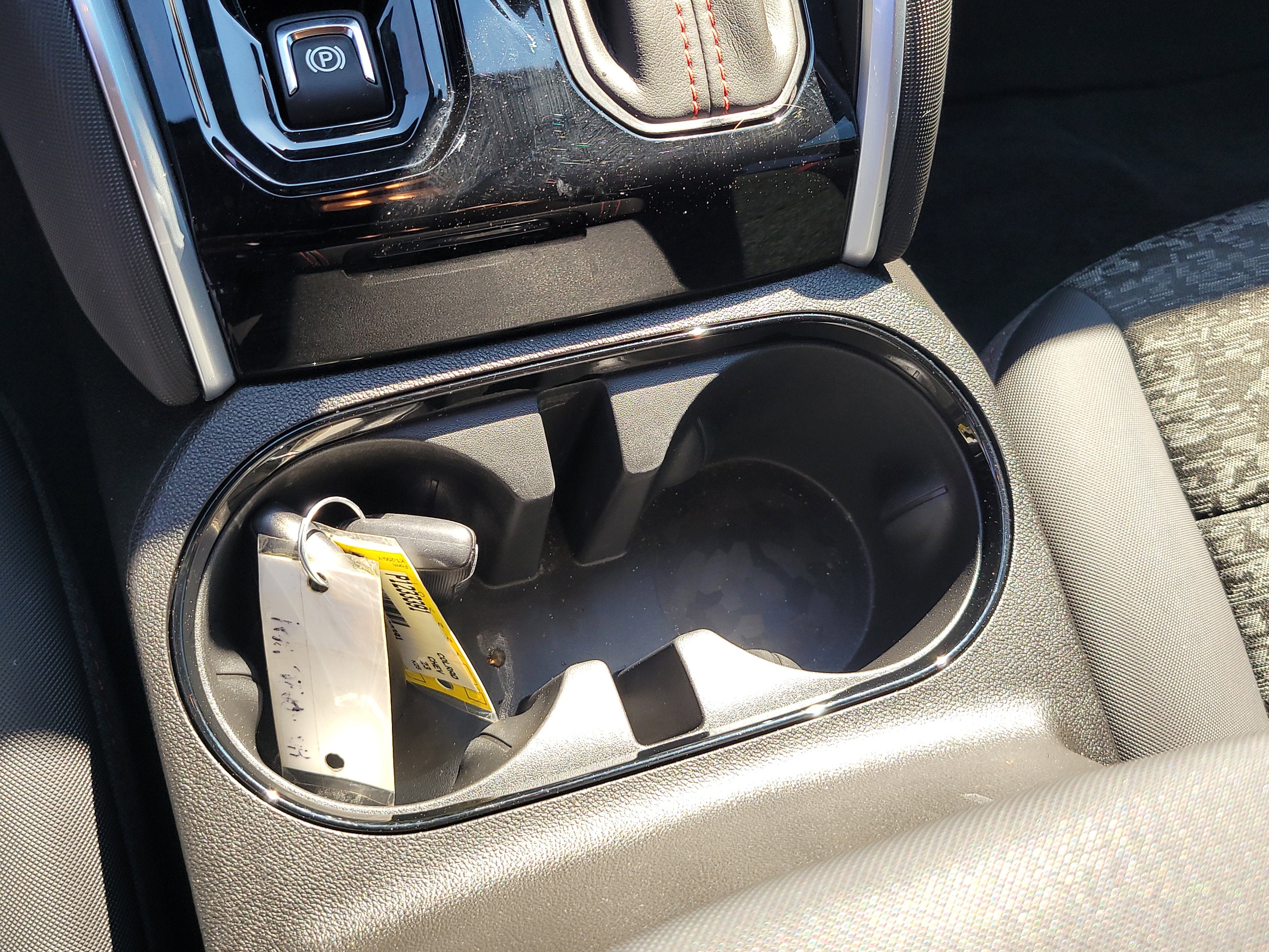 - Console, floor front compartment with cup holders and cell phone storage