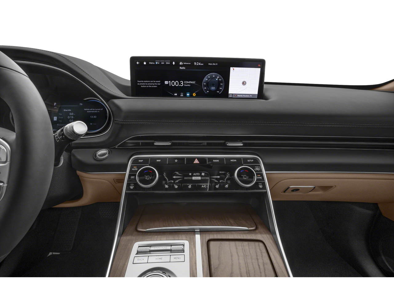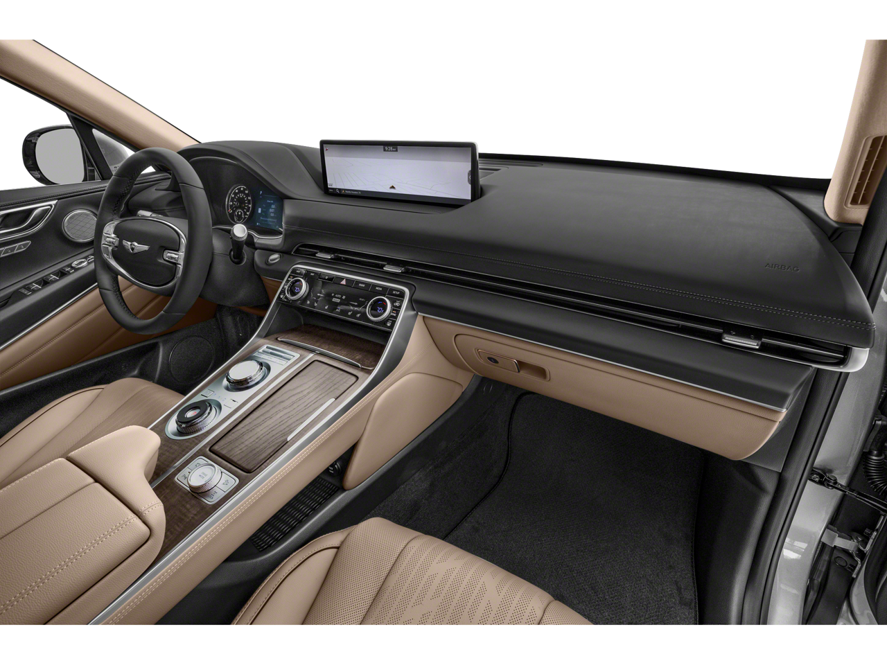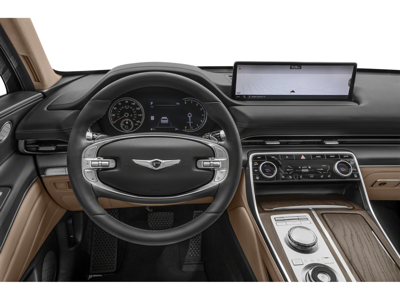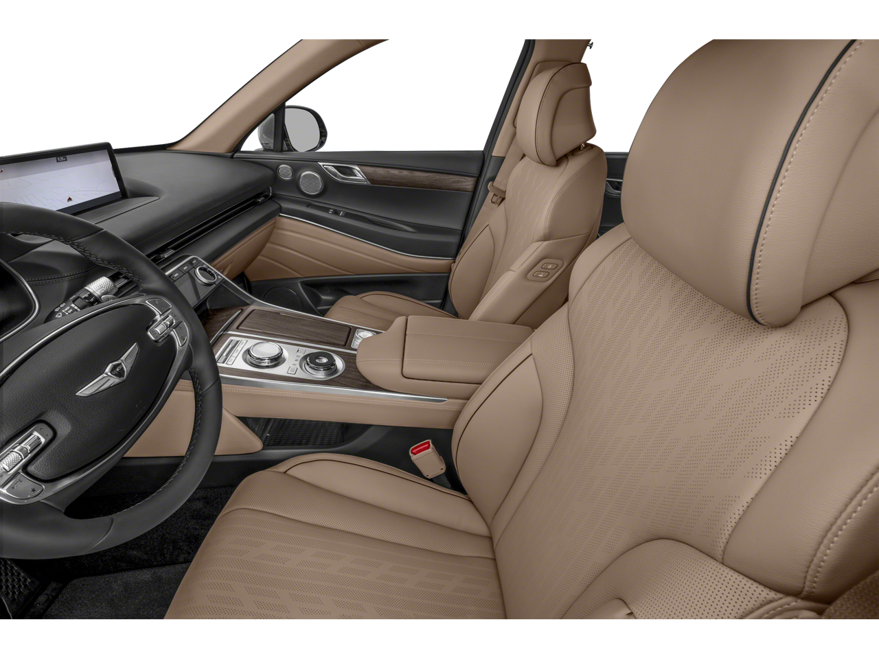 This Vehicle is nicely equipped with the following features: Option Group 01, 12 Speakers, 4-Wheel Disc Brakes, 4.363 Axle Ratio, ABS brakes, Air Conditioning, Alloy wheels, AM/FM radio: SiriusXM, Android Auto & Apple CarPlay, Anti-whiplash front head restraints, Auto High-beam Headlights, Auto tilt-away steering wheel, Auto-dimming door mirrors, Auto-dimming Rear-View mirror, Auto-leveling suspension, Automatic temperature control, Brake assist, Bumpers: body-color, Compass, Delay-off headlights, Driver door bin, Driver vanity mirror, Dual front impact airbags, Dual front side impact airbags, Electronic Stability Control, Emergency communication system: Genesis Connected Services, Exterior Parking Camera Rear, Four wheel independent suspension, Front anti-roll bar, Front Bucket Seats, Front Center Armrest, Front dual zone A/C, Front reading lights, Fully automatic headlights, Garage door transmitter: HomeLink, Genuine wood console insert, Genuine wood dashboard insert, Genuine wood door panel insert, Heated door mirrors, Heated Front Bucket Seats, Heated front seats, Heated steering wheel, Illuminated entry, Knee airbag, Leather steering wheel, Leatherette Seating Surfaces, Low tire pressure warning, Memory seat, Navigation System, Occupant sensing airbag, Outside temperature display, Overhead airbag, Overhead console, Panic alarm, Passenger door bin, Passenger vanity mirror, Power door mirrors, Power driver seat, Power Liftgate, Power passenger seat, Power steering, Power windows, Radio data system, Radio:14.5 Navigation System w/AM/FM/HD Radio, Rain sensing wipers, Rear air conditioning, Rear anti-roll bar, Rear reading lights, Rear seat center armrest, Rear side impact airbag, Rear window defroster, Rear window wiper, Remote keyless entry, Security system, Speed control, Speed-sensing steering, Speed-Sensitive Wipers, Split folding rear seat, Spoiler, Steering wheel memory, Steering wheel mounted audio controls, Tachometer, Telescoping steering wheel, Tilt steering wheel, Traction control, Trip computer, Turn signal indicator mirrors, Variably intermittent wipers, and Wheels: 19 x 8.5J Medium Metallic Gray Alloy.