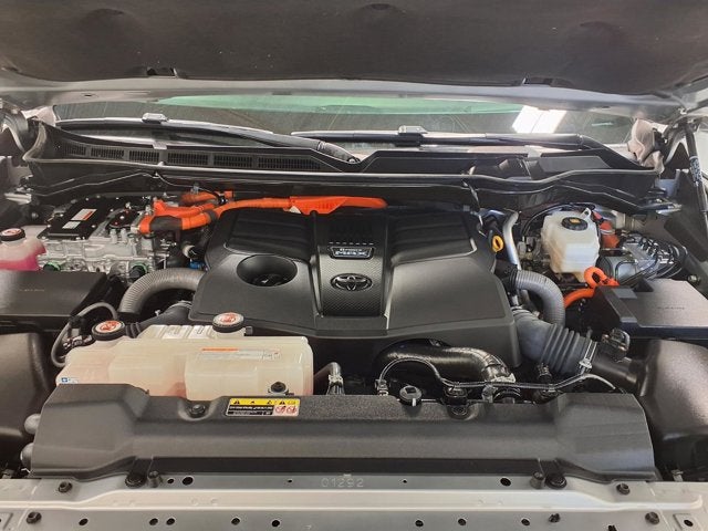 This vehicle comes equipped with: V6 Hybrid, 10-Speed Automatic, 4WD, 14 Speakers, 3.31 Axle Ratio, 3rd row seats: split-bench, 4-Wheel Disc Brakes, ABS brakes, Air Conditioning, Alloy wheels, AM/FM radio: SiriusXM, Anti-whiplash front head restraints, Apple CarPlay/Android Auto, Auto High-beam Headlights, Auto tilt-away steering wheel, Auto-dimming door mirrors, Auto-dimming Rear-View mirror, Automatic Power Extending Running Boards, Automatic temperature control, Brake assist, Bumpers: body-color, Compass, Delay-off headlights, Driver door bin, Driver vanity mirror, Dual front impact airbags, Dual front side impact airbags, Electronic Stability Control, Emergency communication system: Safety Connect (10-year trial), Exterior Parking Camera Rear, Front anti-roll bar, Front Bucket Seats, Front Center Armrest w/Storage, Front dual zone A/C, Front fog lights, Front reading lights, Front wheel independent suspension, Fully automatic headlights, Garage door transmitter: HomeLink, Genuine wood door panel insert, Head Up Display (HUD), Headlight cleaning, Heads-Up Display, Heated & Ventilated Front Seats, Heated door mirrors, Heated front seats, Heated Power Auto-Dimming Outside Mirrors, Heated rear seats, Heated steering wheel, Illuminated entry, Knee airbag, Leather Shift Knob, Leather steering wheel, Low tire pressure warning, Memory seat, Navigation system: Drive Connect (1 year trial) includes Cloud Navigation with real time traffic and Google POI, Occupant sensing airbag, Outside temperature display, Overhead airbag, Overhead console, Panic alarm, Passenger door bin, Passenger vanity mirror, Power door mirrors, Power driver seat, Power Liftgate, Power moonroof, Power passenger seat, Power steering, Power windows, Premium audio system: JBL, Radio: JBL Premium Audio System, Rain sensing wipers, Rear air conditioning, Rear reading lights, Rear seat center armrest, Rear window defroster, Rear window wiper, Reclining 3rd row seat, Remote keyless entry, Security system, Semi-Aniline Leather Seat Trim, Speed control, Speed-sensing steering, Split folding rear seat, Spoiler, Sport steering wheel, Steering wheel mounted audio controls, Tachometer, Telescoping steering wheel, Tilt steering wheel, Traction control, Trip computer, Turn signal indicator mirrors, Variably intermittent wipers, Ventilated front seats, Ventilated rear seats, Voltmeter, and Wheels: 20 Machined-Finish Black Alloy.
