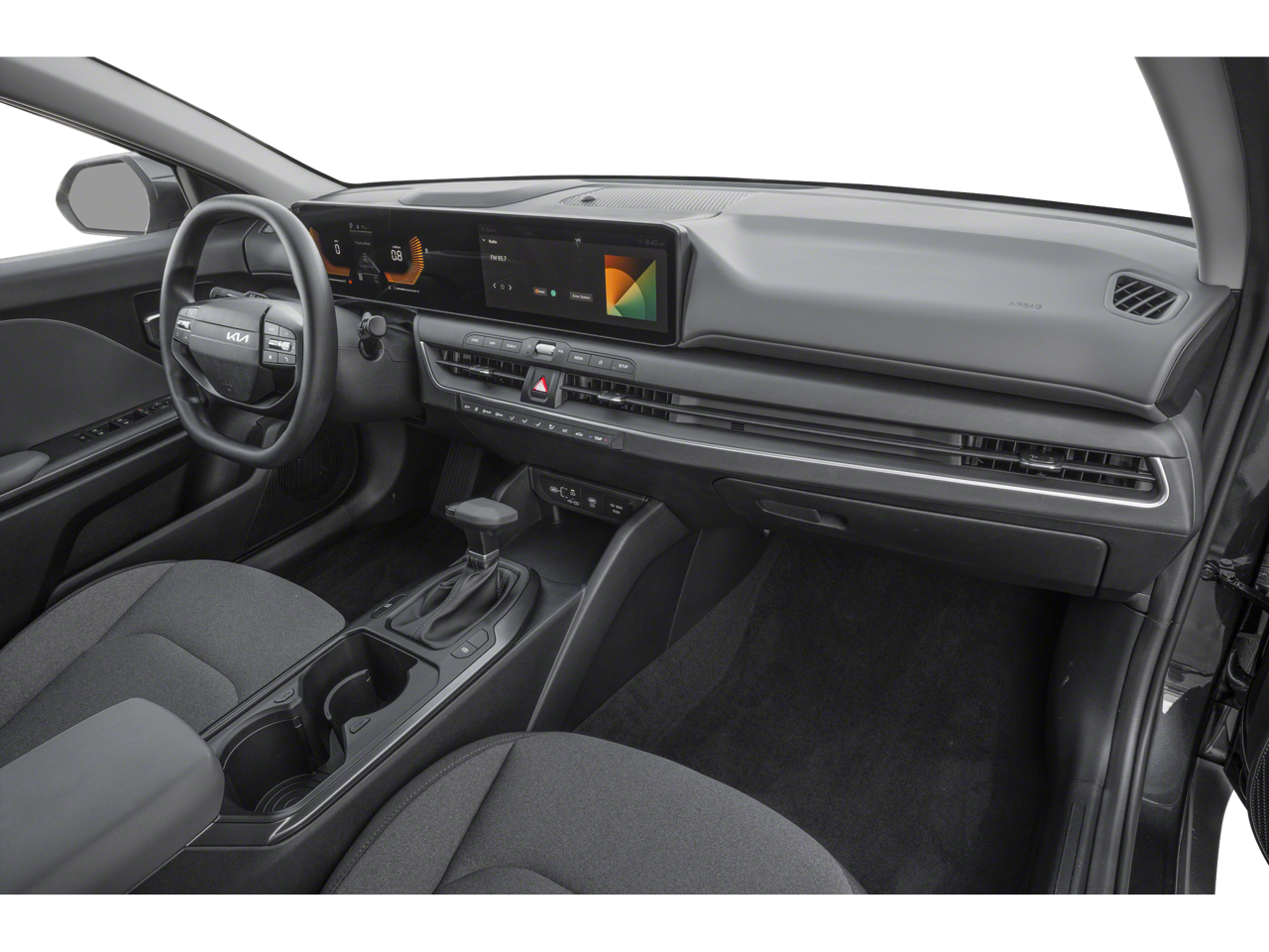 This vehicle comes equipped with : Kia Certified Pre-Owned Certified, 4-Wheel Disc Brakes, ABS brakes, Air Conditioning, AM/FM radio: SiriusXM, Apple CarPlay & Android Auto, Auto High-beam Headlights, Brake assist, Bumpers: body-color, Carpeted Floor Mats, Cloth Seat Trim, Delay-off headlights, Driver door bin, Driver vanity mirror, Dual front impact airbags, Dual front side impact airbags, Electronic Stability Control, Front anti-roll bar, Front Bucket Seats, Front Center Armrest, Front reading lights, Front wheel independent suspension, Fully automatic headlights, Heated door mirrors, Illuminated entry, Low tire pressure warning, Occupant sensing airbag, Outside temperature display, Overhead airbag, Overhead console, Panic alarm, Passenger door bin, Passenger vanity mirror, Power door mirrors, Power steering, Power windows, Radio data system, Radio: 12.3" Touchscreen Audio Display, Rear side impact airbag, Rear window defroster, Remote keyless entry, Security system, Speed control, Steering wheel mounted audio controls, Tachometer, Telescoping steering wheel, Tilt steering wheel, Traction control, Trip computer, and Variably intermittent wipers.