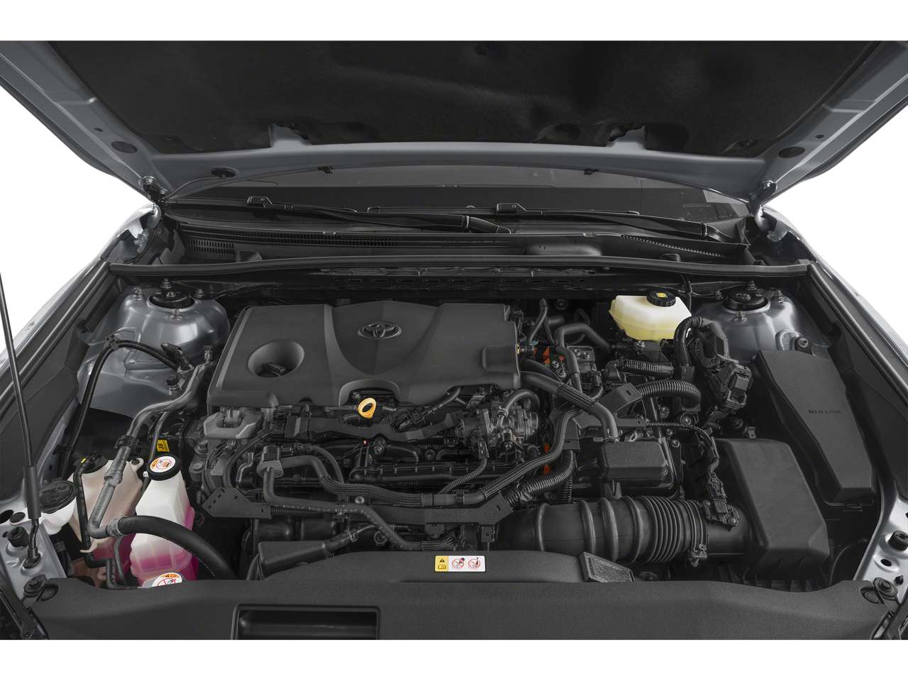 This vehicle comes equipped with: 2.5L 4-Cylinder 16V DOHC, Leather, 4-Wheel Disc Brakes, 6 Speakers, ABS brakes, Air Conditioning, Alloy wheels, AM/FM radio: SiriusXM, Apple CarPlay/Android Auto, Auto High-beam Headlights, Auto-dimming Rear-View mirror, Automatic temperature control, Brake assist, Bumpers: body-color, Delay-off headlights, Driver door bin, Driver vanity mirror, Dual front impact airbags, Dual front side impact airbags, Electronic Stability Control, Emergency communication system: Safety Connect (up to 10-year trial subscription), Exterior Parking Camera Rear, Four wheel independent suspension, Front anti-roll bar, Front Bucket Seats, Front Center Armrest, Front dual zone A/C, Front reading lights, Fully automatic headlights, Garage door transmitter: HomeLink, Heated door mirrors, Heated Front Bucket Seats, Heated front seats, Heated steering wheel, Illuminated entry, Knee airbag, Leather Shift Knob, Leather steering wheel, Leather/Dinamica Microfiber Seat Trim, Low tire pressure warning, Occupant sensing airbag, Outside temperature display, Overhead airbag, Overhead console, Panic alarm, Passenger door bin, Passenger vanity mirror, Power door mirrors, Power driver seat, Power passenger seat, Power steering, Power windows, Radio data system, Radio: Toyota Audio Multimedia w/12.3 Touchscreen, Rear anti-roll bar, Rear reading lights, Rear seat center armrest, Rear side impact airbag, Rear window defroster, Remote keyless entry, Security system, Speed control, Speed-sensing steering, Split folding rear seat, Steering wheel mounted audio controls, Telescoping steering wheel, Tilt steering wheel, Traction control, Trip computer, Turn signal indicator mirrors, Variably intermittent wipers, and Wheels: 18 Black & Machine-Finished Alloy.