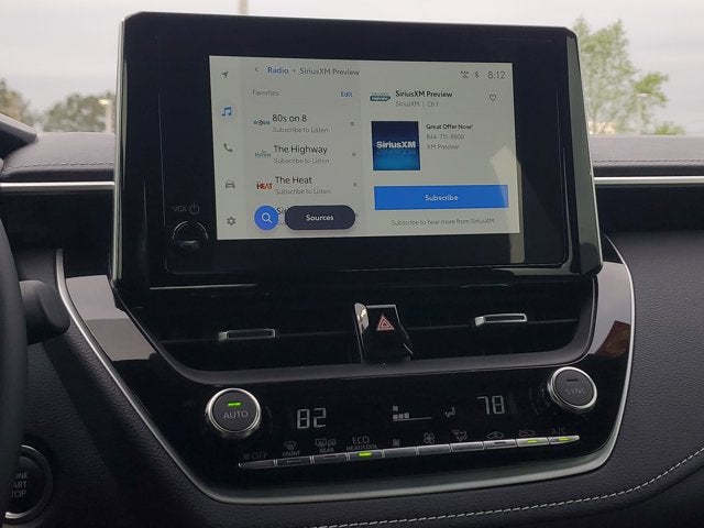 This Vehicle is nicely equipped with the following features: 4-Wheel Disc Brakes, 8 Speakers, ABS brakes, Air Conditioning, Alloy wheels, AM/FM radio: SiriusXM, Auto High-beam Headlights, Automatic temperature control, Brake assist, Bumpers: body-color, Compass, Delay-off headlights, Driver door bin, Driver vanity mirror, Dual front impact airbags, Dual front side impact airbags, Electronic Stability Control, Emergency communication system: Safety Connect (up to 10-year trial subscription), Exterior Parking Camera Rear, Four wheel independent suspension, Front anti-roll bar, Front Bucket Seats, Front Center Armrest, Front dual zone A/C, Front fog lights, Front reading lights, Heated door mirrors, Heated front seats, Heated Sport Front Seats, Illuminated entry, Knee airbag, Leather Shift Knob, Leather steering wheel, Low tire pressure warning, Occupant sensing airbag, Outside temperature display, Overhead airbag, Overhead console, Panic alarm, Passenger door bin, Passenger vanity mirror, Power door mirrors, Power driver seat, Power steering, Power windows, Radio data system, Radio: 8 Toyota Audio Multimedia, Rear anti-roll bar, Rear seat center armrest, Rear side impact airbag, Rear window defroster, Rear window wiper, Remote keyless entry, Security system, SofTex Seat Trim with Fabric Inserts, Speed control, Speed-sensing steering, Split folding rear seat, Spoiler, Steering wheel mounted audio controls, Tachometer, Telescoping steering wheel, Tilt steering wheel, Traction control, Trip computer, Turn signal indicator mirrors, Variably intermittent wipers, and Wheels: 18 Graphite-Colored Alloy.