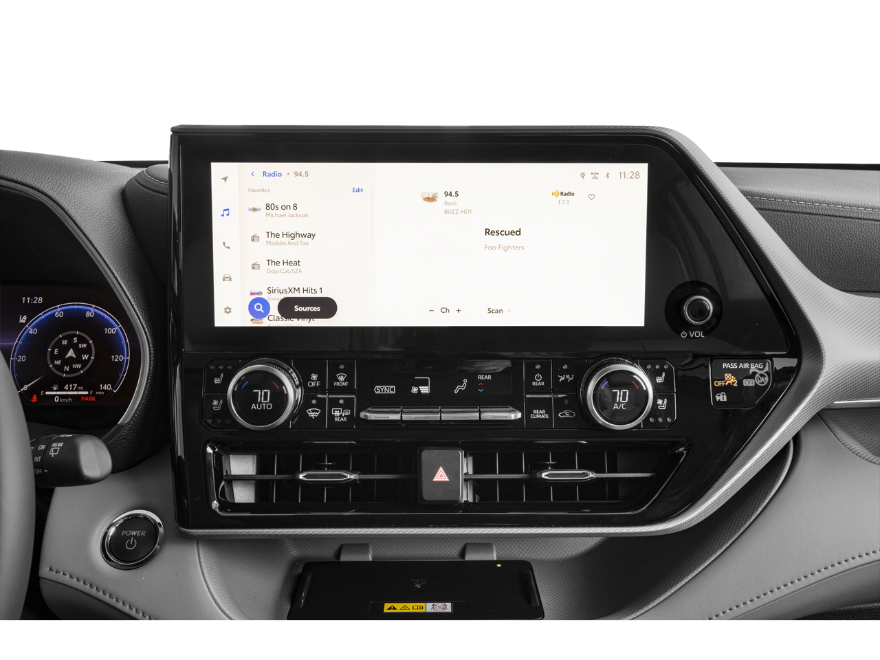 - Radio: 12.3" Toyota Audio Multimedia w/JBL Premium -inc: 11-speaker audio including subwoofer and amplifier, wireless Apple CarPlay and Android Auto compatibility, USB media port, 4 USB charge ports, hands-free phone capability and music streaming via Bluetooth® wireless technology, SiriusXM w/3-month trial subscription and Wi-Fi Connect including AT&T Wi-Fi hotspot w/up to 30-day or 3 GB trial subscription (whichever comes first) and integrated streaming (Apple Music and Amazon Music) compatibility, Subscription required after trial, 4G network dependent, See toyota.com/connected-services for details