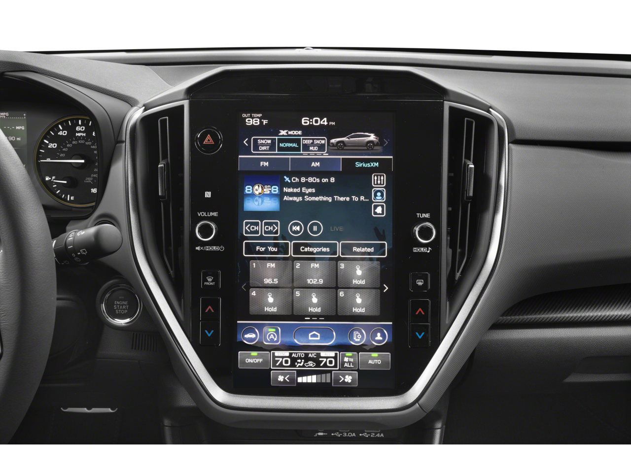 - Radio: Subaru 11.6" Multimedia Plus System -inc: AM/FM stereo, HD Radio, multi-touch gesture high resolution display screen, voice activated controls, Bluetooth® audio streaming and hands-free phone connectivity, Bluetooth® hands-free SMS text messaging connectivity, iPod control capability, smartphone integration: wired and wireless Android Auto w/full screen view and wireless Apple CarPlay w/full screen view, USB and Over The Air (OTA) audio system update, steering wheel audio system and Bluetooth® control switches, 6 speakers (2 dash panel tweeter, 2 front door and 2 rear door), illuminated 3.5mm auxiliary input jack, illuminated front USB A and C input/charge ports, connected services operation indicator, SOS emergency assistance: red SOS button and enhanced roadside assistance: blue i-button